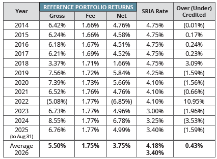The SRIA interest rate increased in 2024 and 2025 reflecting the improving cumulative performance of the Reference Portfolio in 2023 and 2024. 33% of the Reference Portfolio is composed of fixed income loans secured by SRIA account values. The gross return on the loans is approximately 5.40% in 2025 and 5.40% in 2026.
